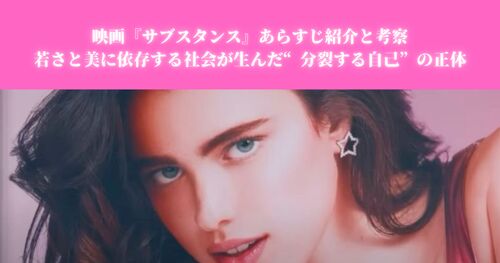 映画『サブスタンス』を考察。若さと美を価値基準とする社会が、エリザベスとスーという分裂した自己をどのように生み出し、破壊へ導いたのかを読み解く。ボディホラーとしての意味と結末の解釈を深掘り解説。